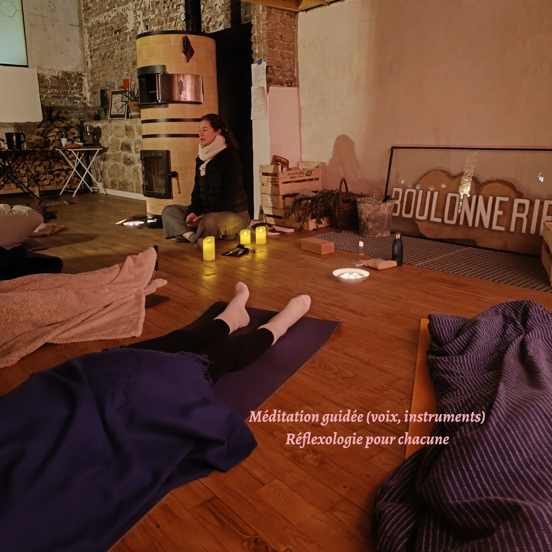 “Emilie et Séverine ont su apporter de la douceur dans le tumulte de mon année. Sophrologie en groupe, enseignement de la réflexologie, et autres activités m’ont permis de me recentrer sur mes besoins et mon bien-être, entourée de belles personnes.”